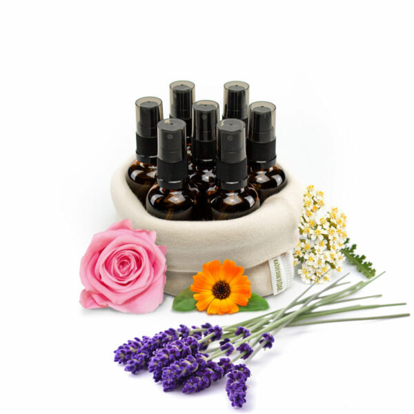 Sada obsahuje: Řebříčková voda s panthenolem, Růžová voda s vlčím mákem, Levandulová voda, Levandulovo-měsíčková voda, Olej růže, Olej levandule, Hyaluronové sérum.